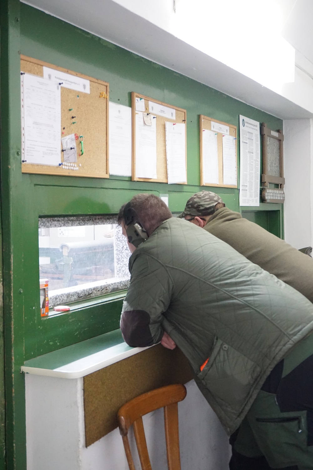Mit der Langwaffe wurde auf auf den Keiler (natürlich auch eine Pappscheibe) in 60m geschossen. Disziplinen: Sitzend, freihändig stehend und auf den laufenden Keiler. Mit der Kurzwaffe ging es dann auf die 10m Scheibe.